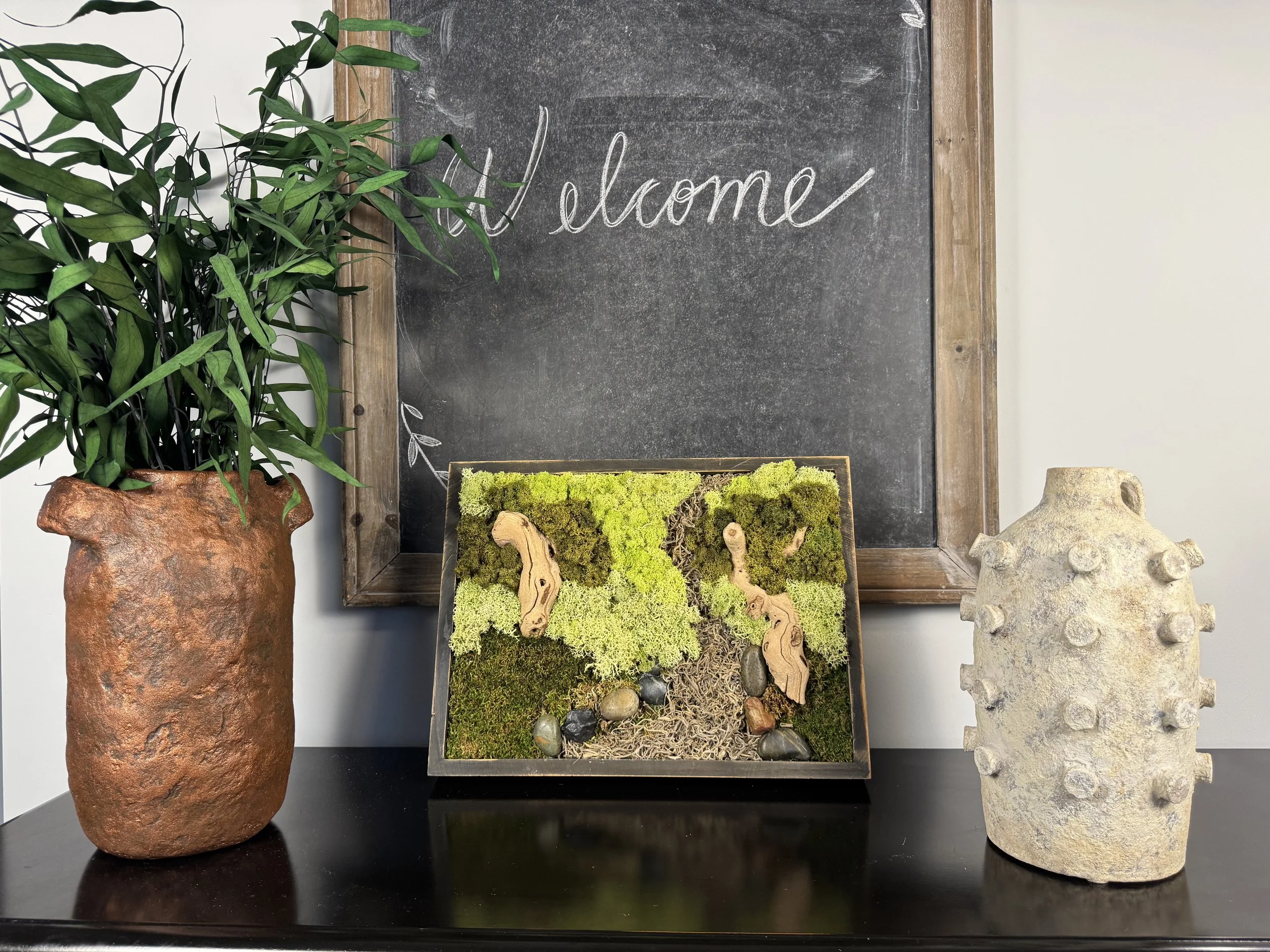 .Sekelle Nathan, the creative force behind Decor Appeal, transforms everyday materials into rustic-modern statement décor that feels both timeless and soulful. Her work blends natural textures, wabi-sabi aesthetics, and modern design, resulting in one-of-a-kind moss art, vessels, trays, and sculptural pieces that elevate any space.